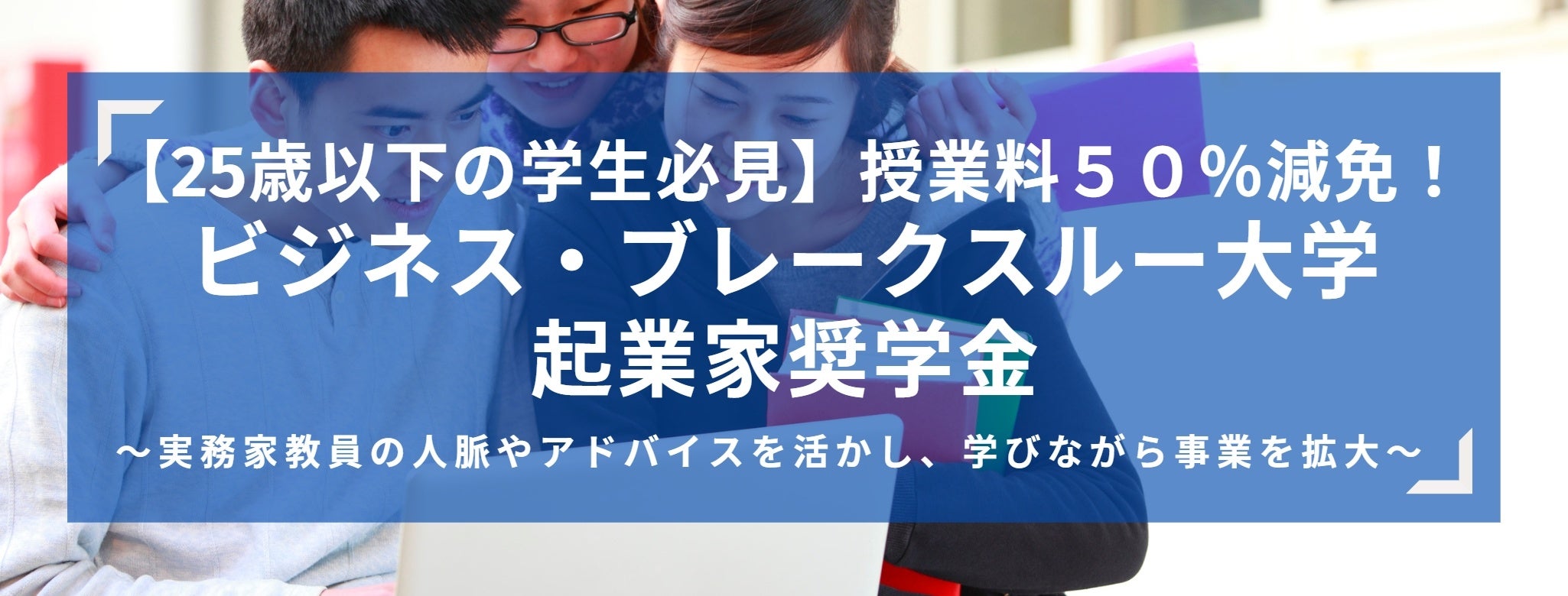 【25歳以下の学生必見】授業料50%減免!ビジネス・ブレークスルー大学の起業家奨学金