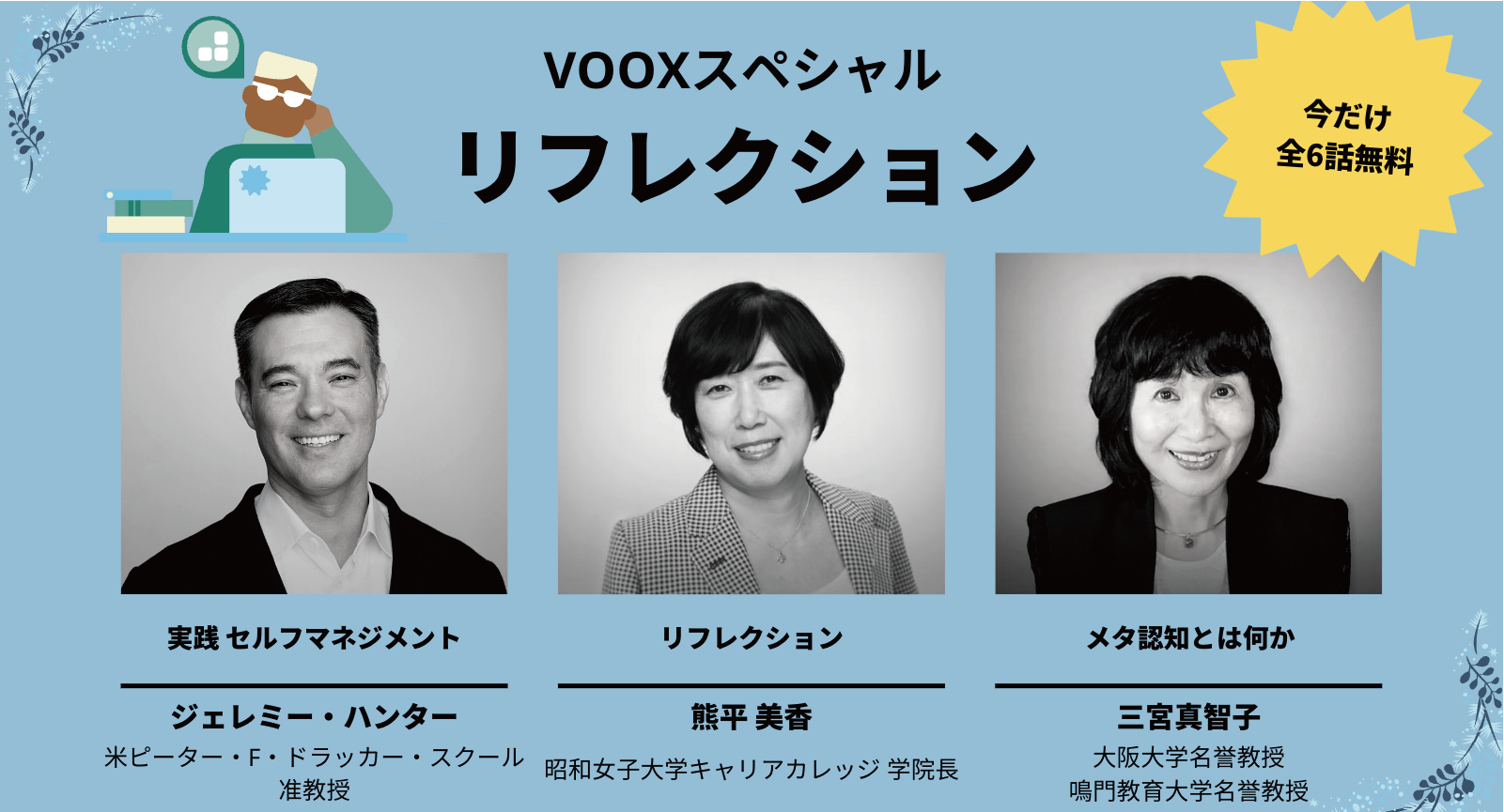 VOOXの人気3作品を2022年12月30日(金)〜2023年1月13日(金) 無料公開。年の瀬に、自分自身を効果的に振り返り、来年に繋げたいみなさん必聴のシリーズです。