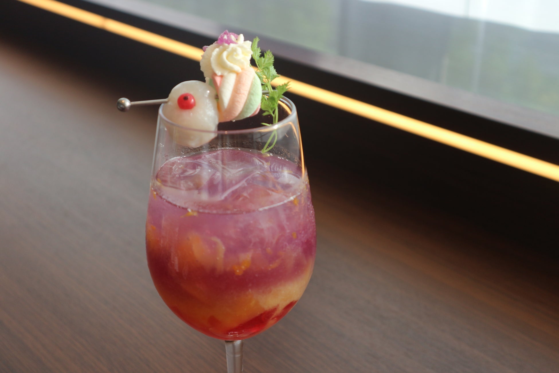 またグランドエール一押しのモクテル(ノンアルコールカクテル)からも、ハロウィン限定メニュー「ミスティックハロウィン」が登場します。アセロラジュレ、オレンジジュレ、バタフライピーシロップの色の層に、目玉に見立てたライチとマシュマロが不気味さを感じさせるこちらのモクテルは、お食事と一緒にぜひお楽しみください。