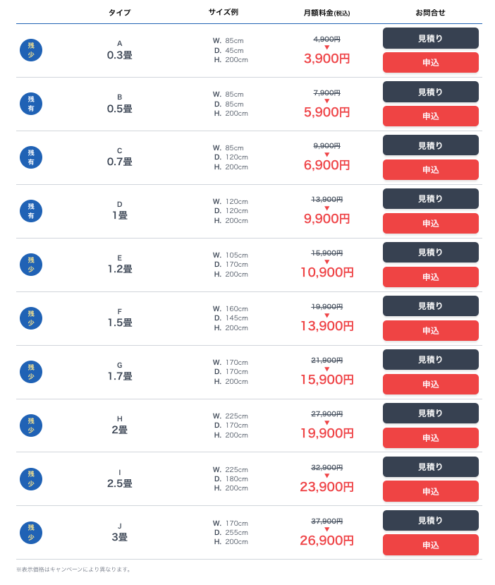 荷物以上に大きな部屋を借りてしまうことや、狭すぎて荷物が入らなかったなんていうトラブルを回避できます。