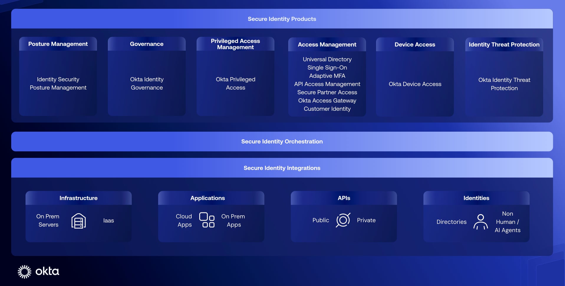 Okta Platformの新機能により、すべてのアイデンティティ(人間と非人間)に対して、ビジネス全体でシームレスに統合された包括的なセキュリティを提供できます。