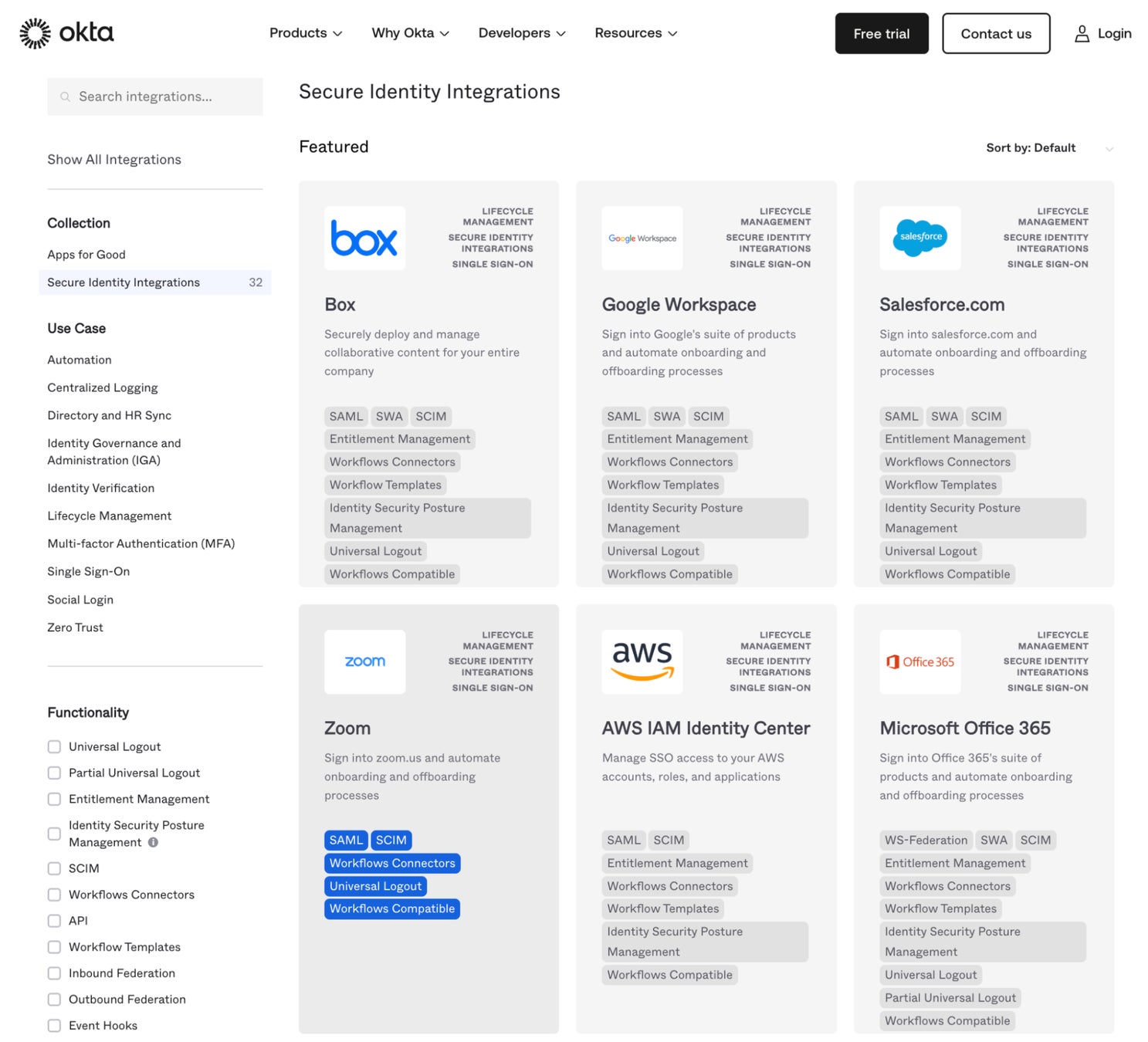 本日より一般提供(GA)を開始したSecure Identity Integrationsは、最も重要な業務アプリケーションに対して、これまでにないレベルの包括的なセキュリティ統合を提供します。現在、Okta Integration Network(OIN)内のコレクションとして提供を開始し、Google Workspace、Microsoft 365、Salesforceなどのアプリケーションにおいて、SSOやライフサイクル管理を超えた高度な統合を迅速に実現します。これにより、ユーザー権限の管理、リスクの可視化、ビルトインの自動修復やUniversal Logoutによる迅速な脅威の封じ込めが可能になります。