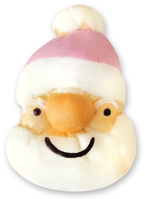 商品説明:練乳入り自社製ビス生地で作った赤い帽子と白いおひげのサンタクロースパン。