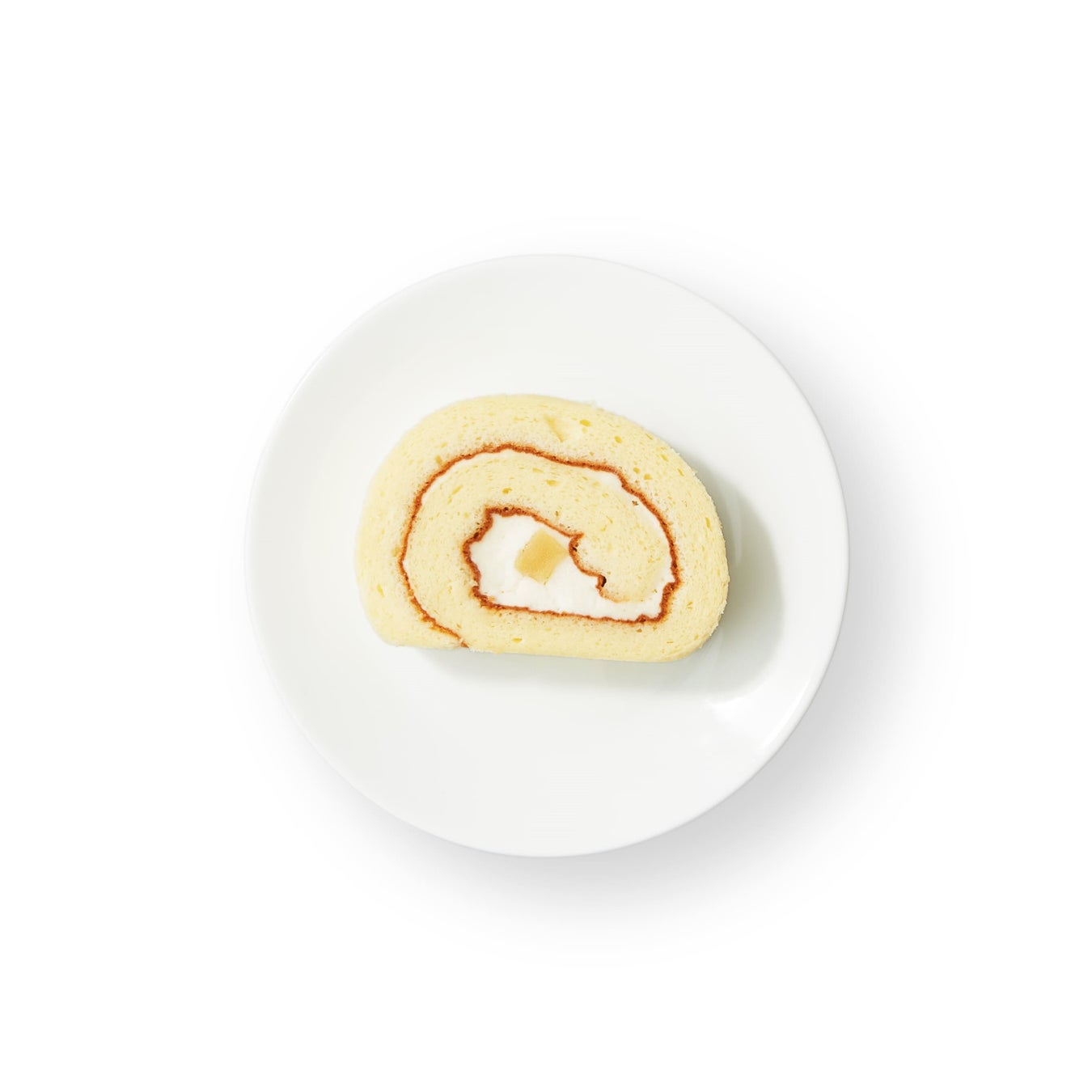 甘いクリームの中に、りんごとさつまいもがごろっと入ったロールケーキです。