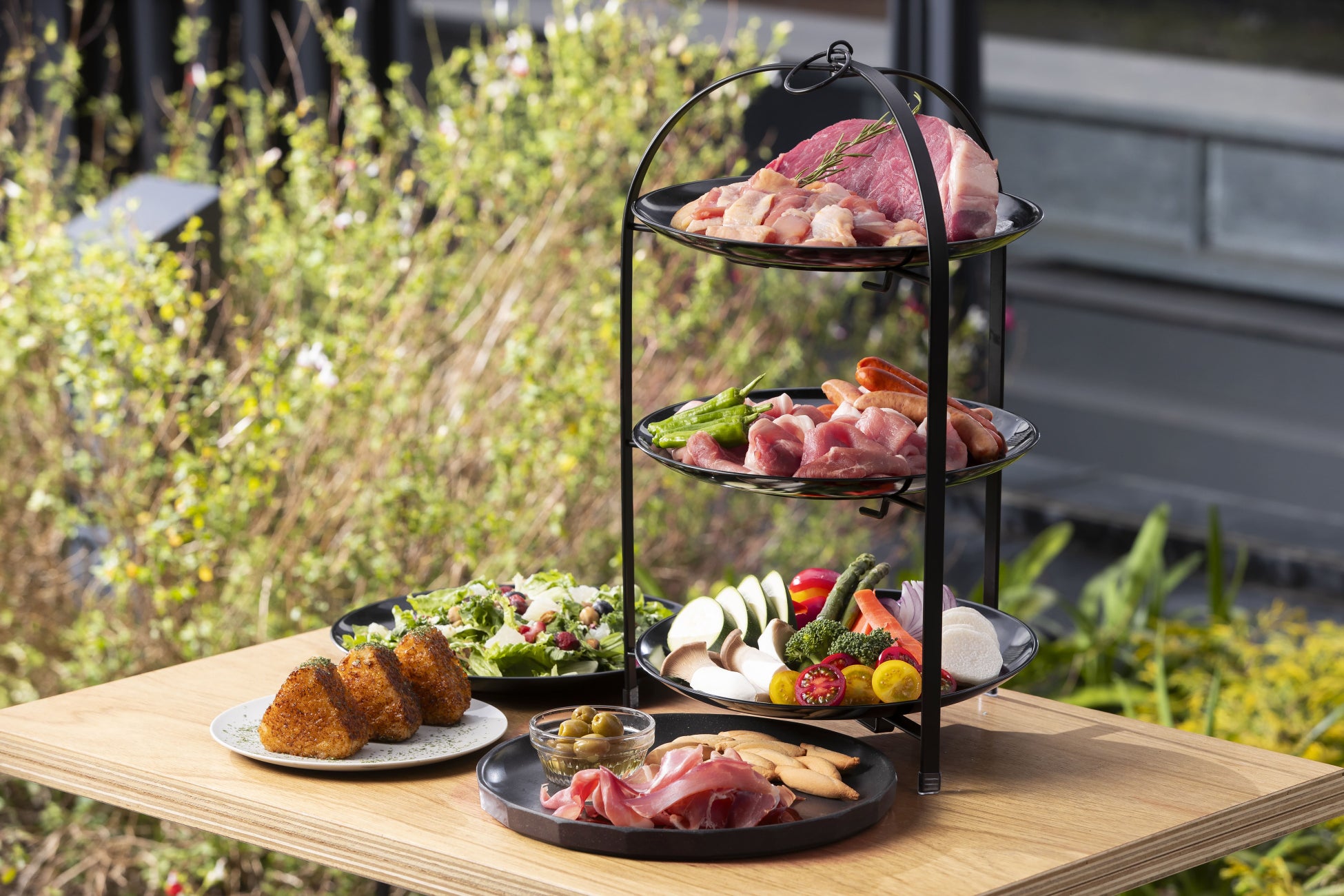 食材はアフタヌーンティーのような3段スタンドでご提供。