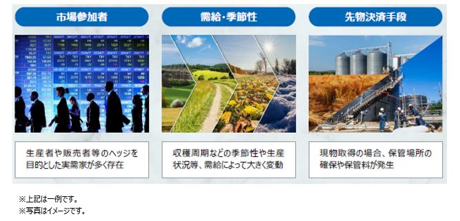 商品先物市場は、各品目ごとに特有の値動きが存在し、それらを捉えることで株式や債券などの金融先物市場とは異なる収益機会を得ることが期待されます。