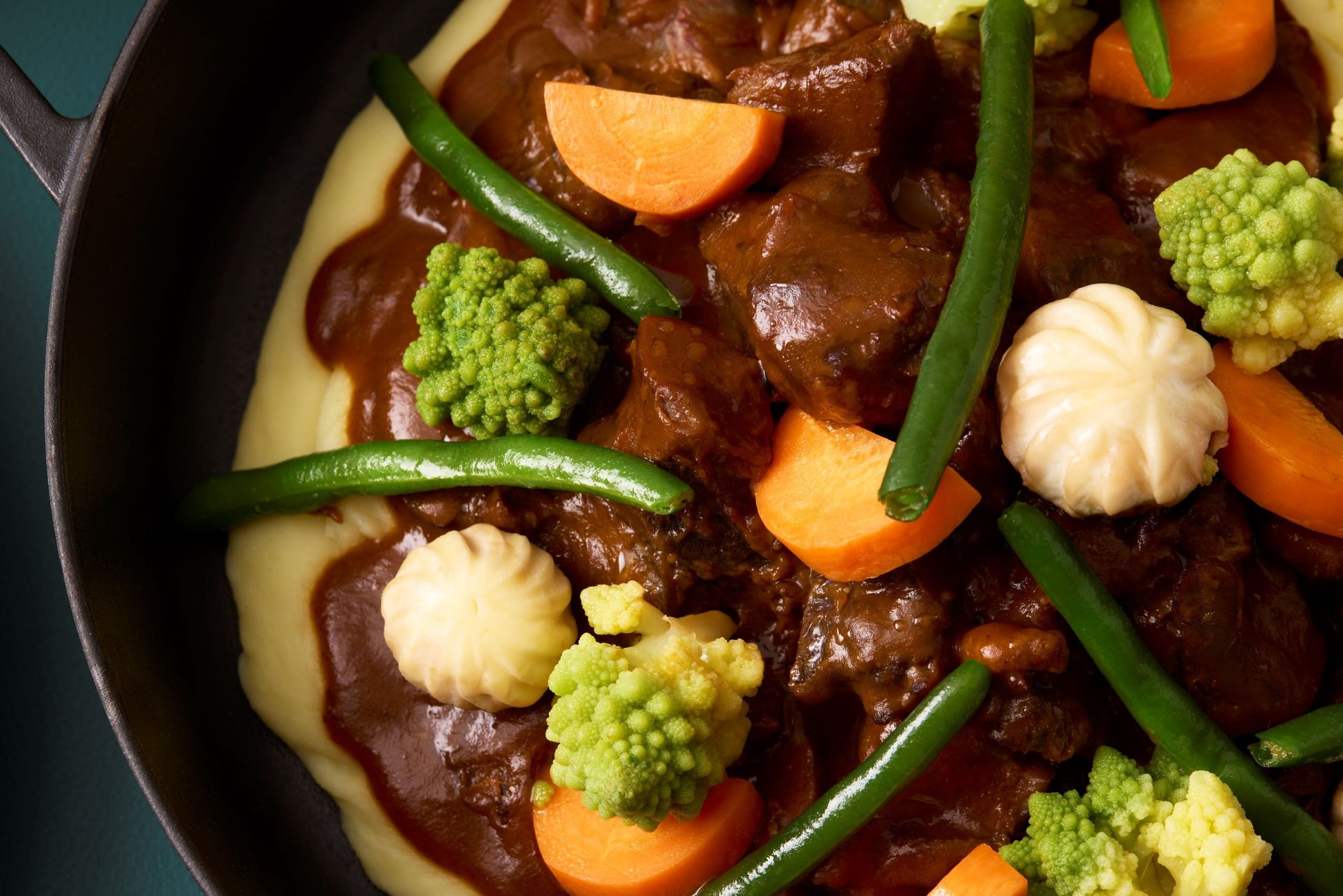 クリスマス期間の12月20日(土)~25日(木)はディナー限定で「牛ホホ肉の赤ワイン煮込み」が登場。牛ホホ肉を赤ワインとブイヨンで約5時間煮込み旨味を凝縮しました。とろっと食感がやみつきになるクリスマス限定メニューです。彩野菜にはロマネスコ、マッシュルームなどを盛り付けています。マッシュポテト、赤ワイン(別売り)と一緒にお楽しみください。