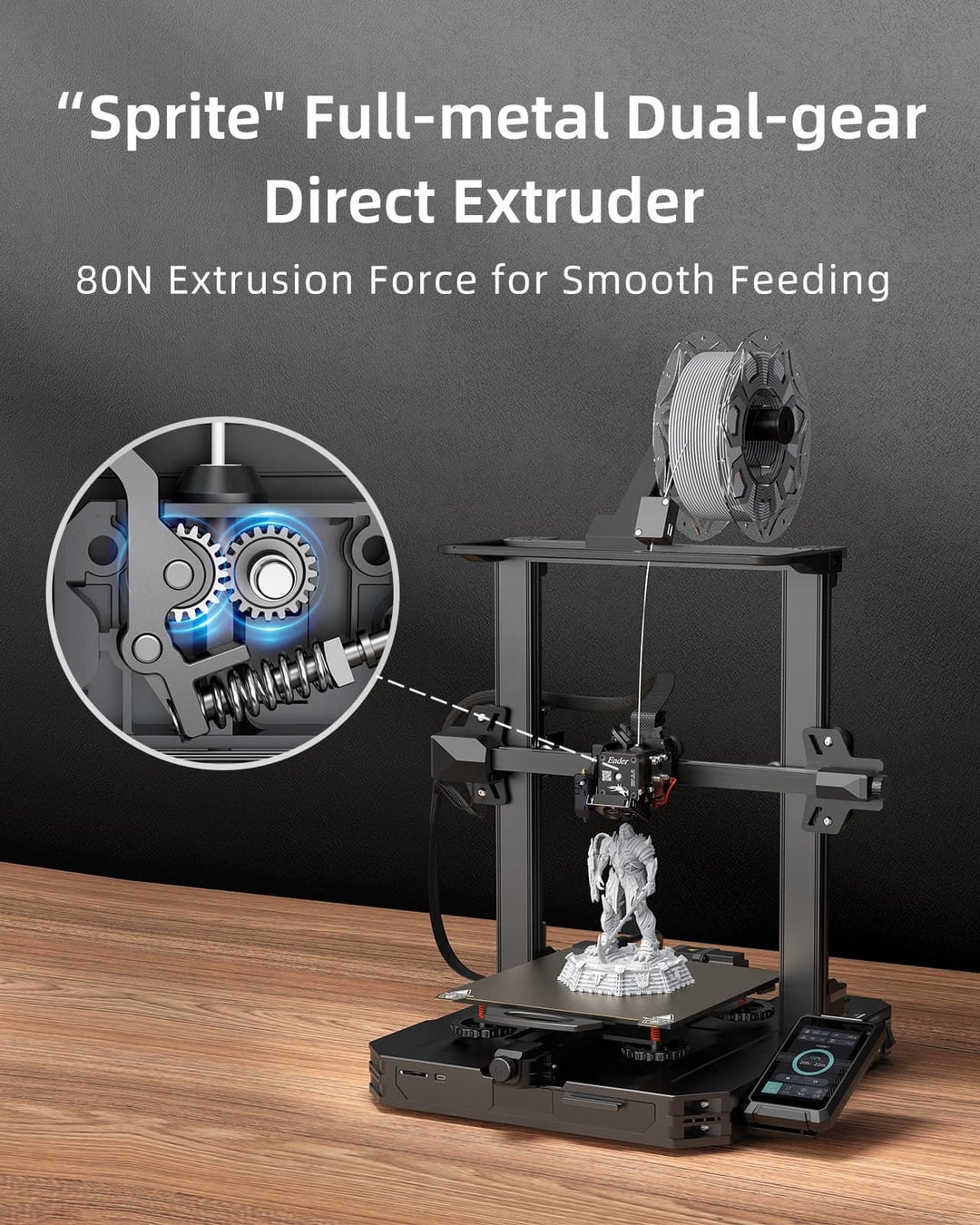 80Nの押出力を備えた「スプライト」フルメタルデュアルギア直接押出機は、さまざまなフィラメント、特にフレキシブルTPUで印刷するときにスムーズな供給を保証します。