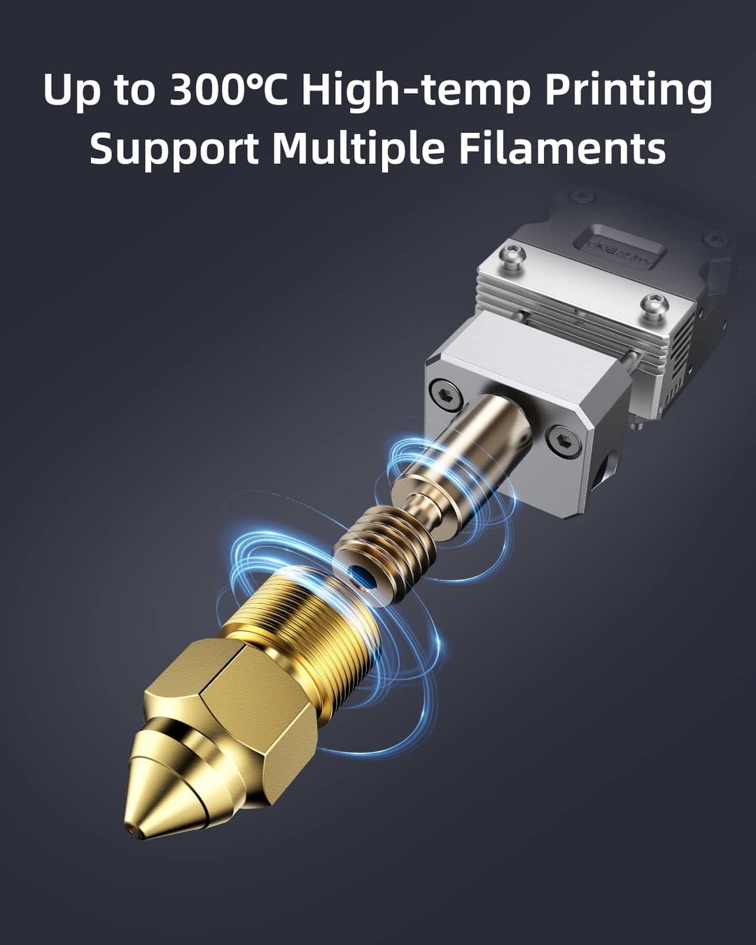 真鍮製の新しいノズルは300°Cの印刷温度に耐えることができ、PLA、ABS、PA、木材、TPU、PETGなどの複数のフィラメントと互換性があります。