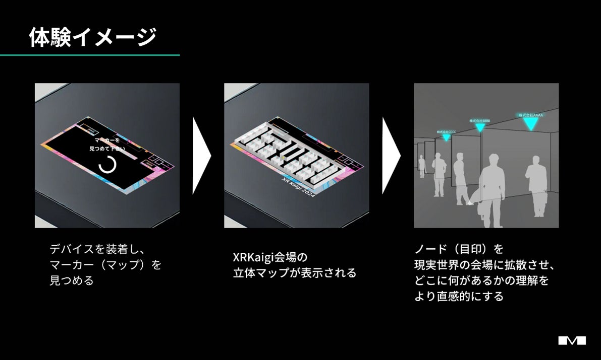 MESONが展示する「XREAL: Holomap」は、現実世界に立体的なマップやノード(目印)を表示することで、「どこに何があるのか」の理解をより直感的にします。 空間コンピューティング技術によって現実世界にデジタル情報が付与され、日常生活がより便利になる体験を楽しむことが可能です。