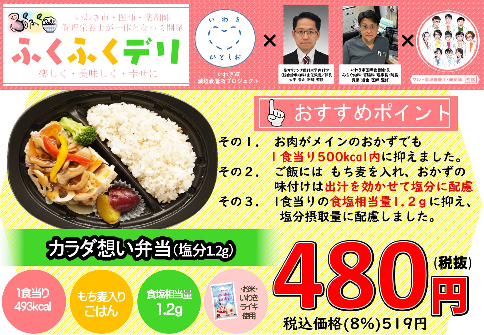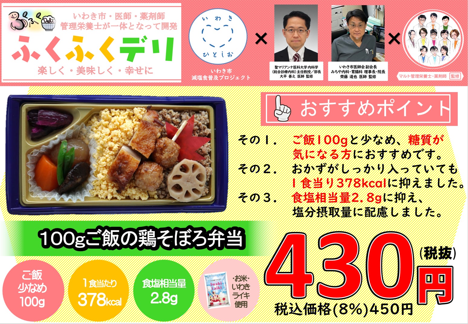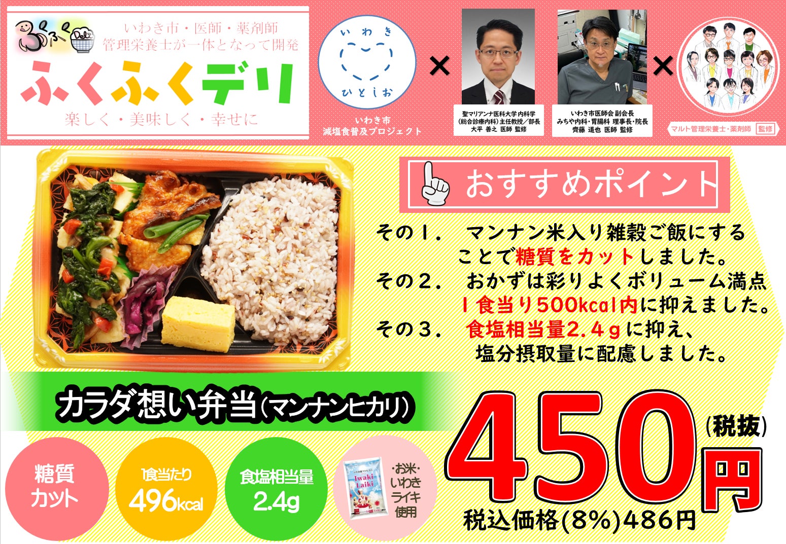 今回発売する商品は、いわき市減塩食普及プロジェクト「いわきひとしお」に合わせた塩分摂取に配慮した弁当となっておりますので、是非ご来店の上ご賞味いただければ幸いでございます。
