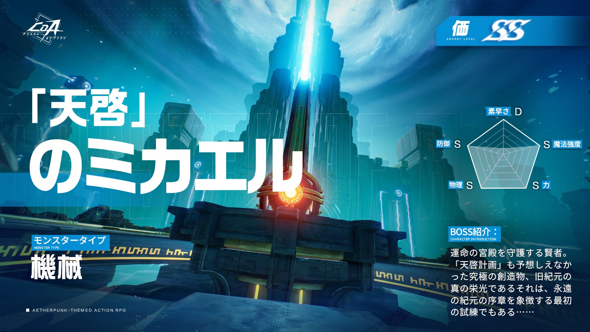 「天啓計画」の真実がついに明らかに……だが、その最終的な創造物はいまだ歴史の埃に埋もれている……「天啓のミカエル」、古代アトラン紀元最後の輝き、彼は静かに挑戦者の来訪を待ち、予言の成就を待ち、約束された結末を待っている……