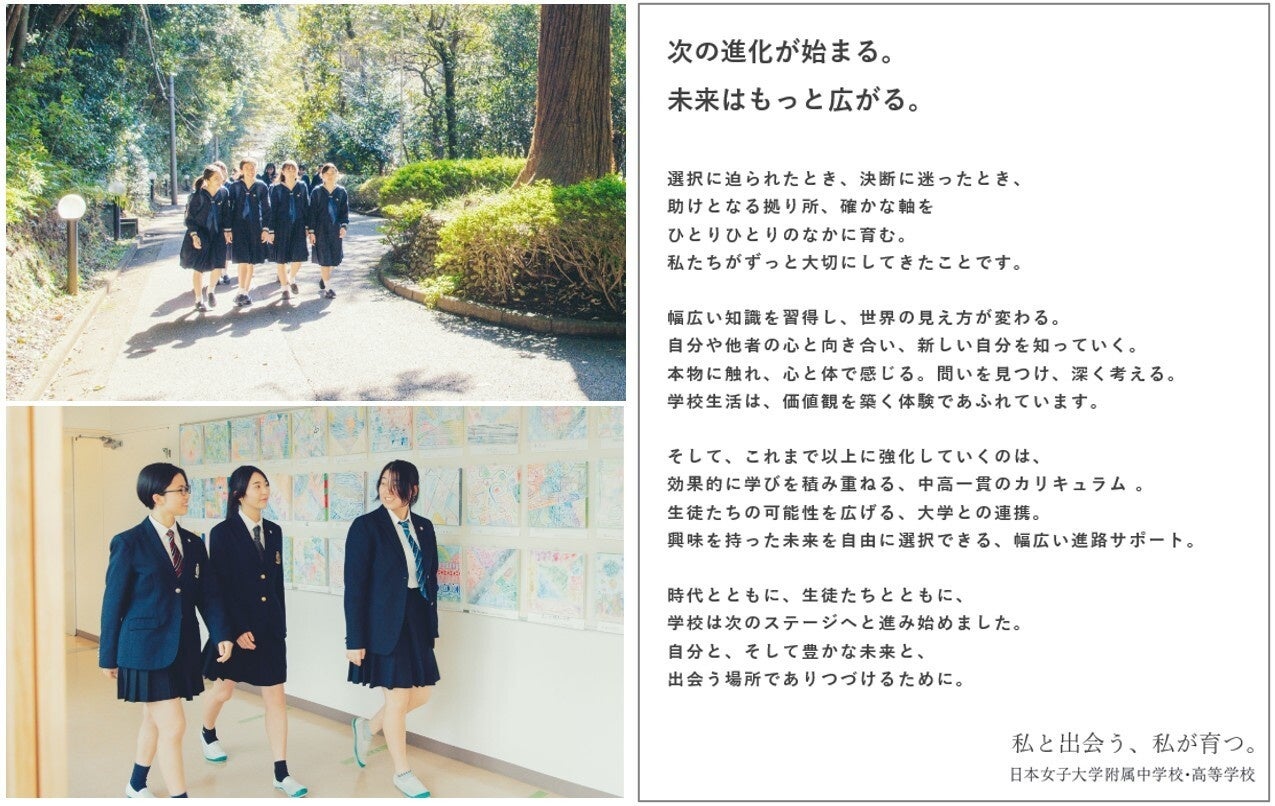 日本女子大学附属中学校・高等学校が学びの連続性の強化と、大学との教育連携を拡充する新方針を発表新タグライン「私と出会う、私が育つ。」を制定