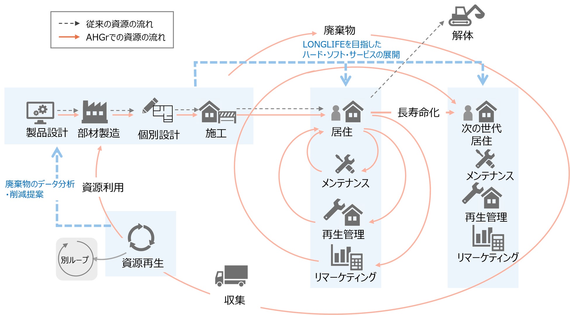 今回受賞した「LONGLIFEを実現する住宅事業」は、LONGLIFEを体現するために、製品設計からリマーケティングにいたるまで当社が提供しているハード・ソフト・サービスを連動させた全体システムです。このシステムは住宅のライフサイクルを通して考えられた仕様開発、邸別設計・施工、60年無料点検に代表されるアフターサービス、ストックの高付加価値化、改修や相続時のコンサルティング等で構成されています。このシステムをお客様およびパートナー企業とともに、全体として機能させることで、世代を超えた循環利用を可能としています。