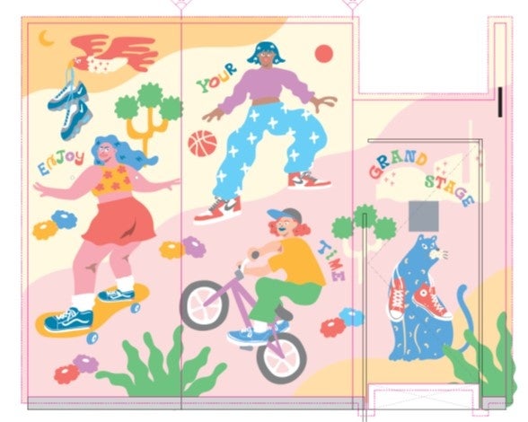 福岡県出身アーティストが店内をカラフル且つポップに彩る