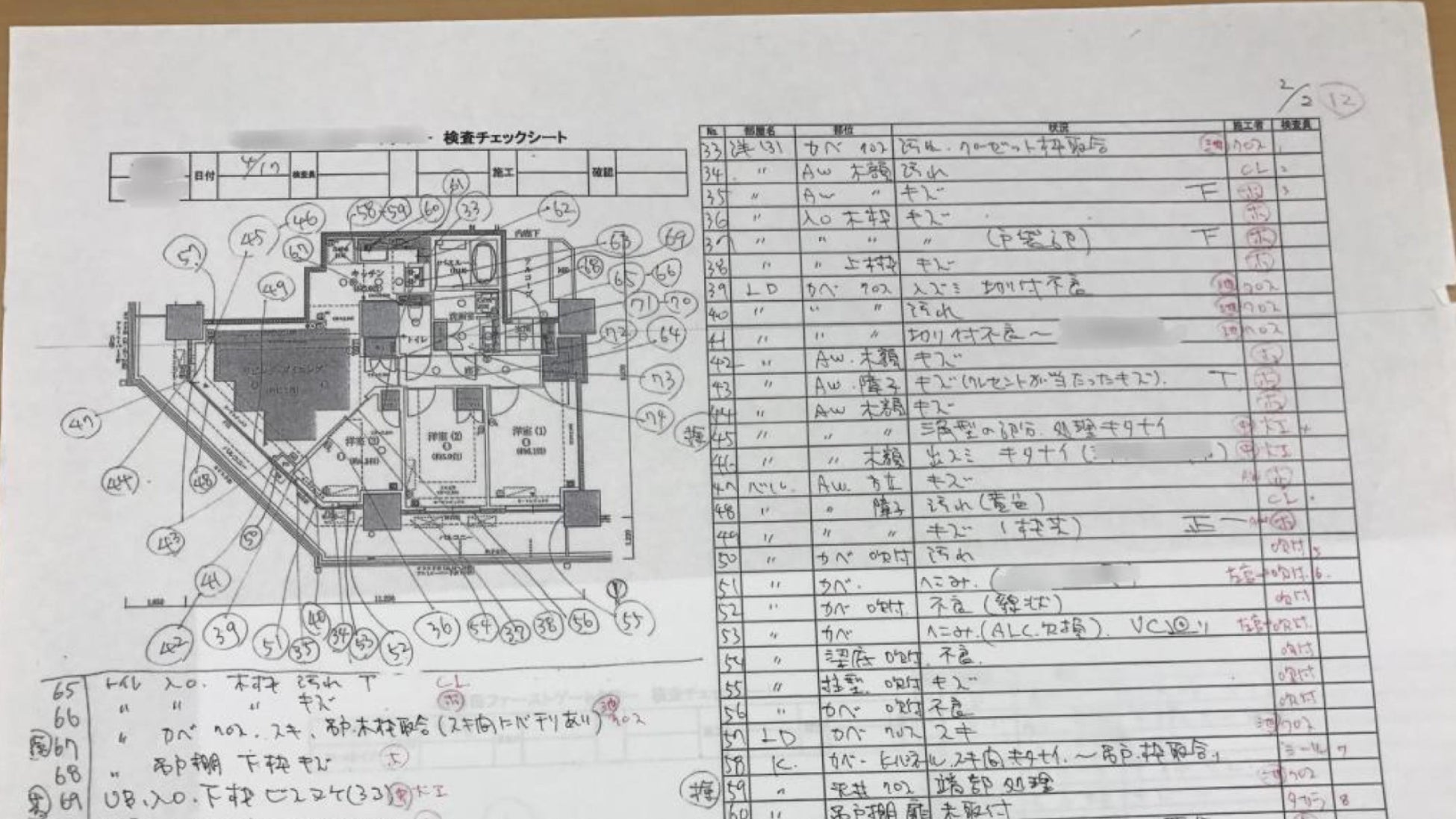 建設、建築業界におけるマンション、分譲・注文住宅などの完成検査などで、不具合指摘の記録を残す業務。不具合箇所は目視検査の上、写真を撮影、図面に手書きでピン打ちして、不具合の箇所と個数 などを不具合箇所を記録する業務の効率化が可能。
