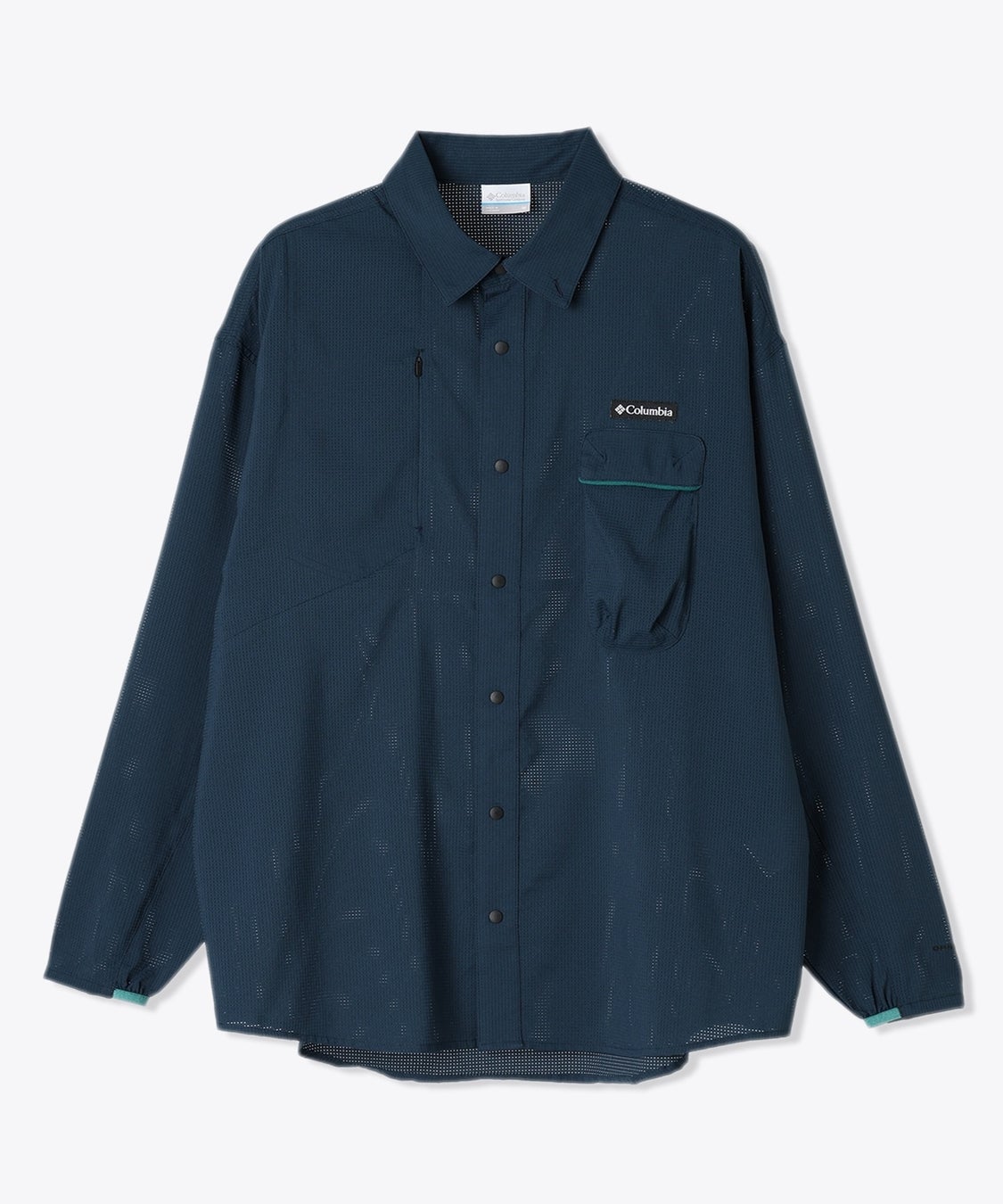 冷却機能「オムニフリーズゼロ」と汗を素早く吸収して乾かす吸湿速乾機能「オムニウィック」を備え、縦横に伸びるストレッチ性を備えた生地には、極小の通気孔を設けているので汗をかきやすい運動時に優れたベンチレーション機能を発揮し、夏山登山を快適にする一枚になっています。