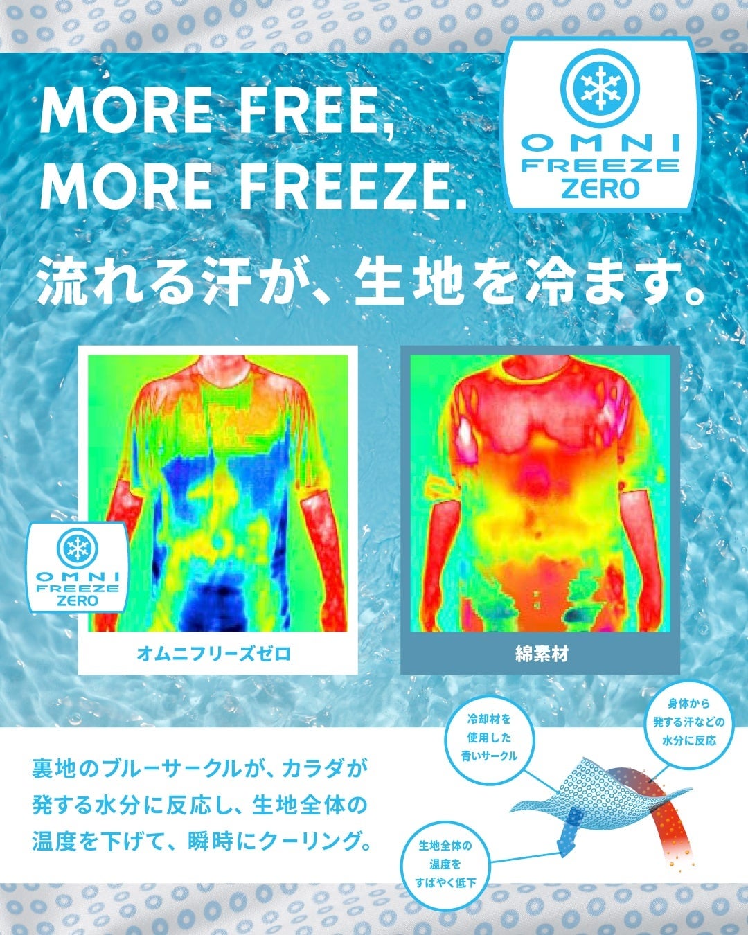流れる汗が、生地を冷ます。独自の発汗冷却機能オムニフリーズゼロ新作アイテムが登場