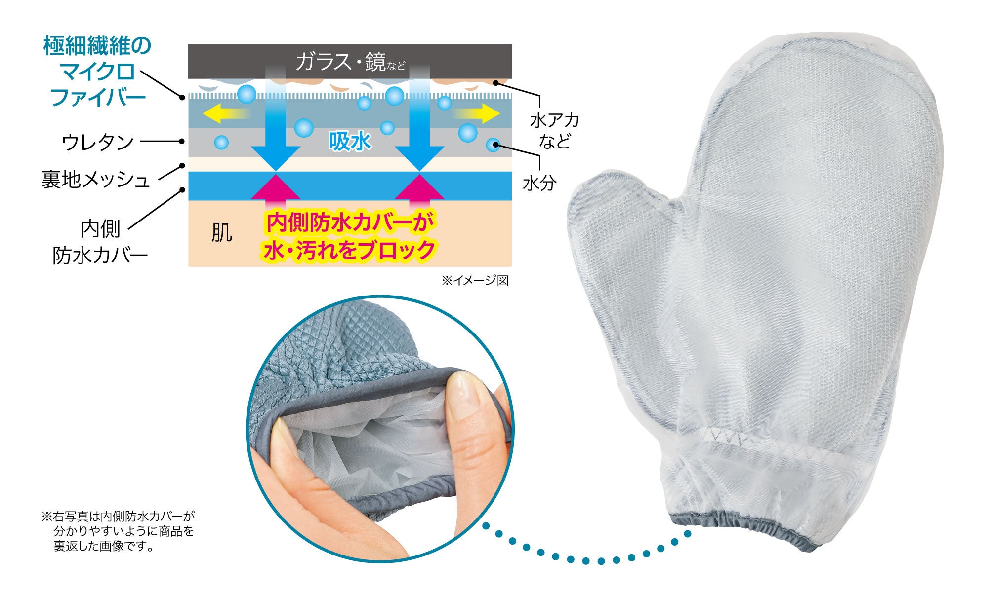 内側防水カバーで手が汚れず濡れない!手荒れで悩む方や汚れが苦手な方の心強い味方!