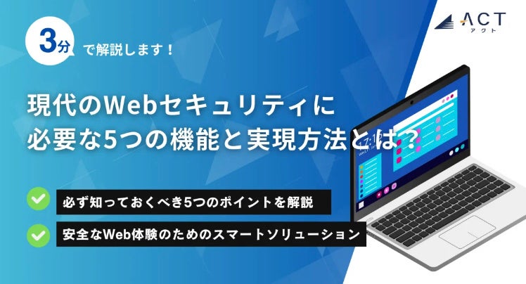 今年30周年を迎え、サイバーセキュリティ事業などを行う株式会社アクト(本社:東京都文京区、代表取締役CEO 小林 智彦 、以下 アクト)は【3分で解説!現代のWebセキュリティに必要な5つの機能と実現方法とは?】のホワイトペーパーを公開しました。