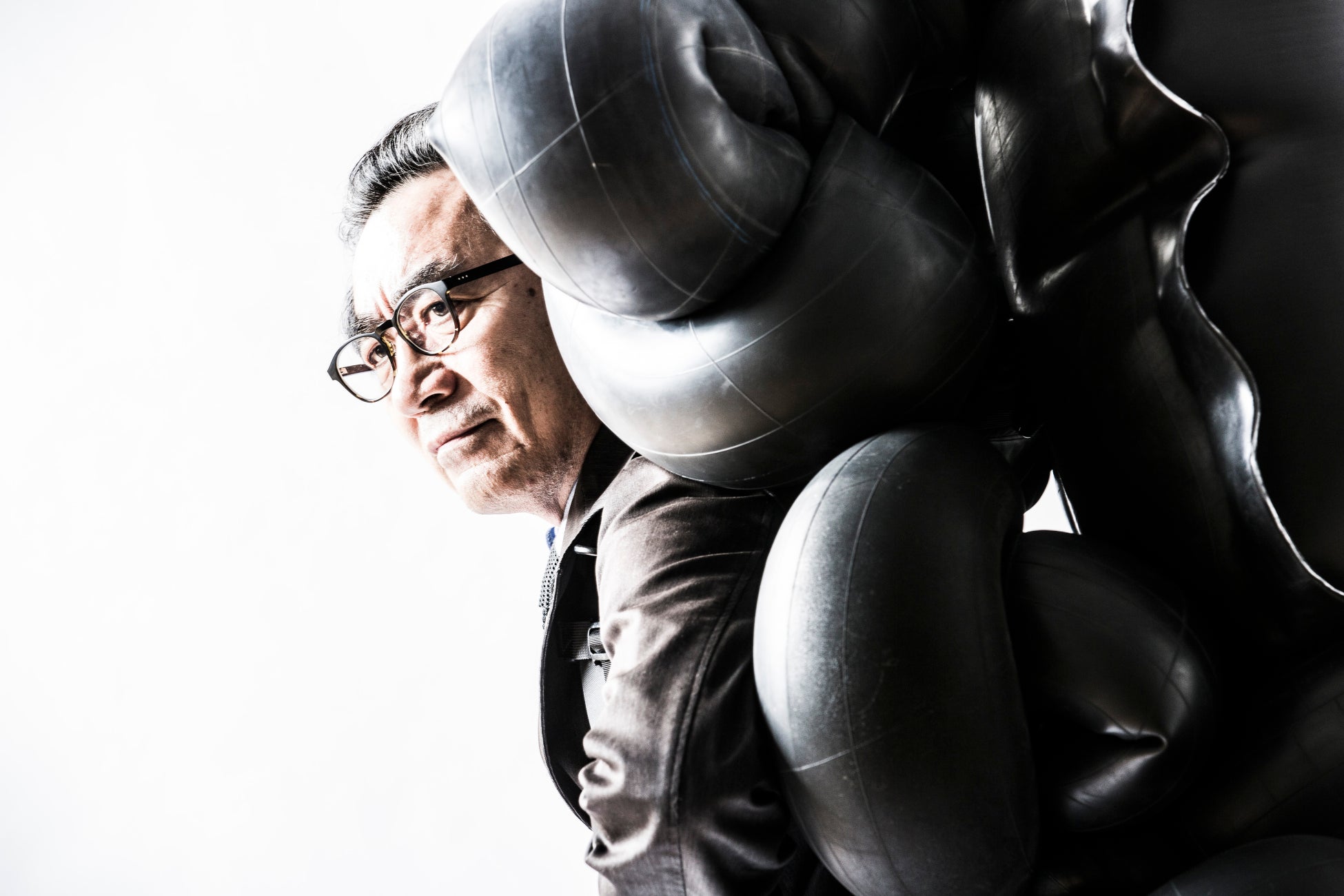 1948年福岡県生まれ。1996年よりゴムチューブ巨大彫刻を美術館やギャラリー等で発表。1999年より作品を背負い国内・海外各所を訪れる《重い荷物》パフォーマンスを開始。2020年田主丸藝術研究所(TIAR)に参加。