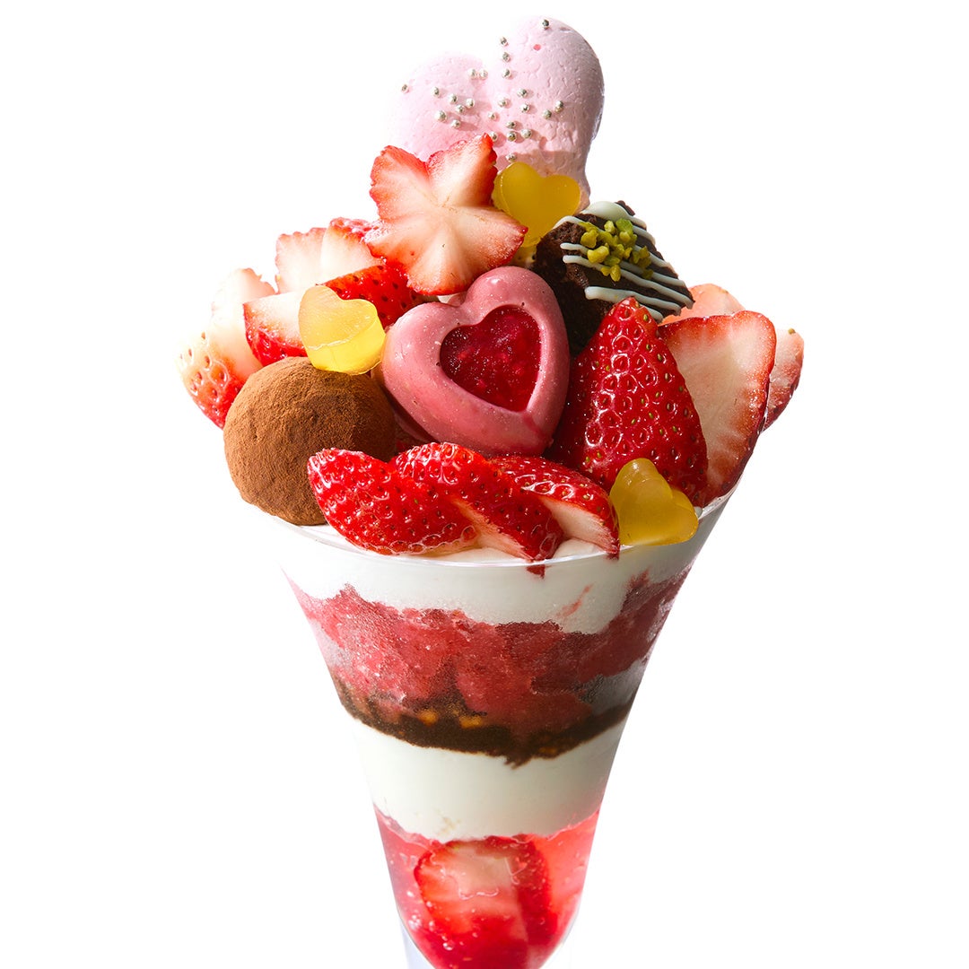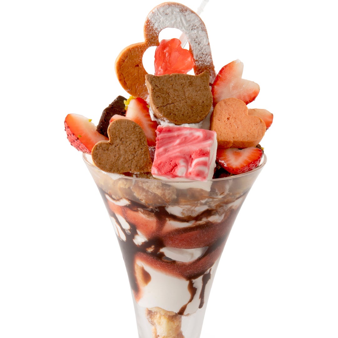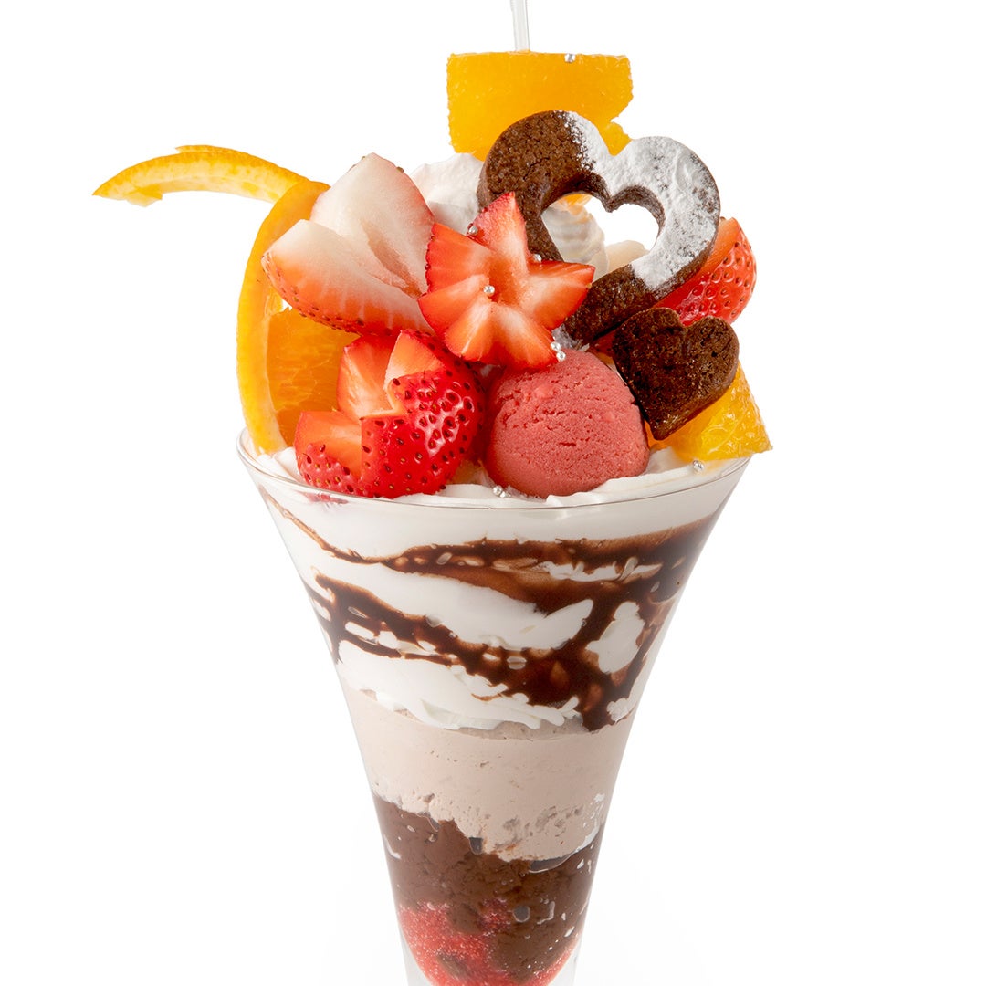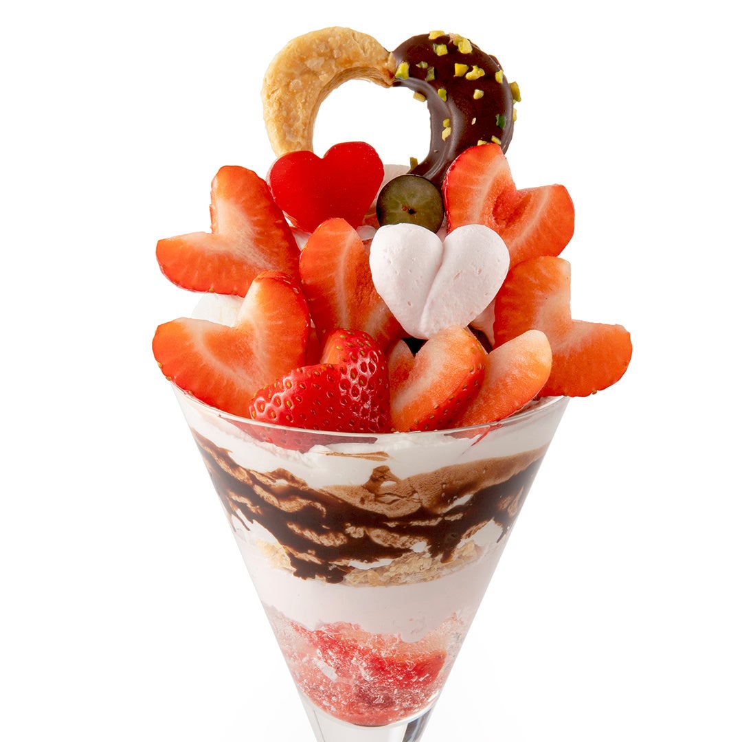 苺とチョコを組み合わせたパフェを中心に、一部店舗ではワッフルやプレートスタイルのメニューもご用意しました。