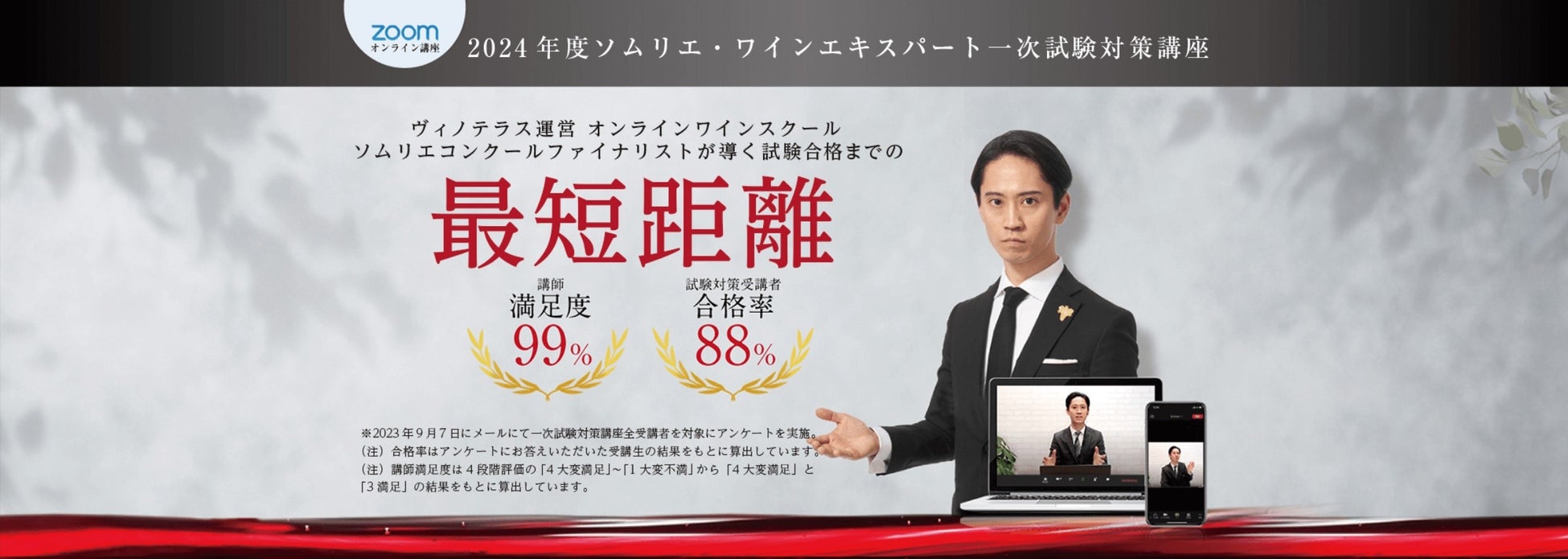 ワインエナジー株式会社が運営するヴィノテラス ワインスクールが、ご自宅からも受講可能な2024年度ソムリエ・ワインエキスパート試験対策オンライン講座を開講!
