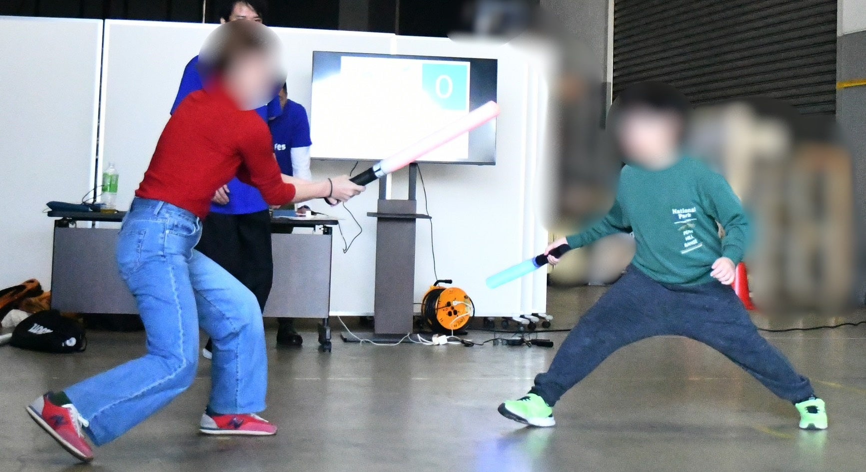 SASSENは、センサー内蔵の柔らかい刀で相手を斬る、デジタル技術を活用した新感覚スポーツです。勝敗はiPadでリアルタイムに判定され、シンプルで直感的なルールにより、子どもから高齢者まで誰もが楽しめるフィジカル×デジタルの「フィジタルスポーツ」として注目されています。