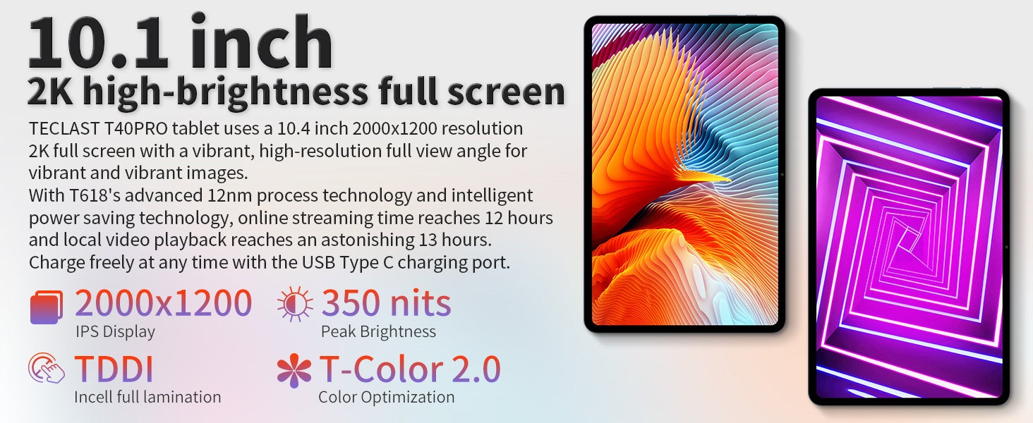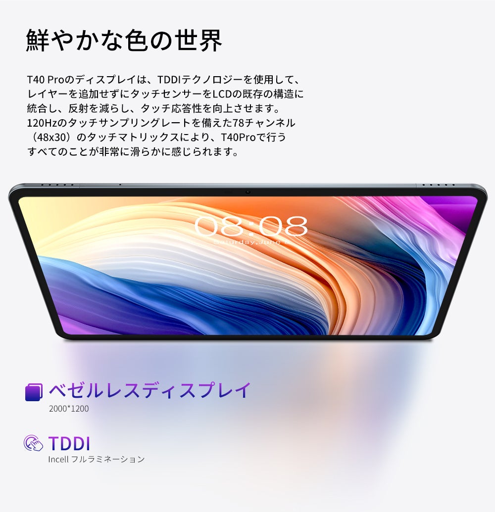 10.4インチの2Kベゼルレス、BOEテクノロジーによって提供されるディスプレイは、TDDIテクノロジーを使用して、レイヤーを追加したり、反射を減らしたり、タッチ応答性を向上させたりすることなく、タッチセンサーをLCDの既存の構造に統合します。 T-Color 2.0色最適化アルゴリズムにより、色が画面から飛び出します。