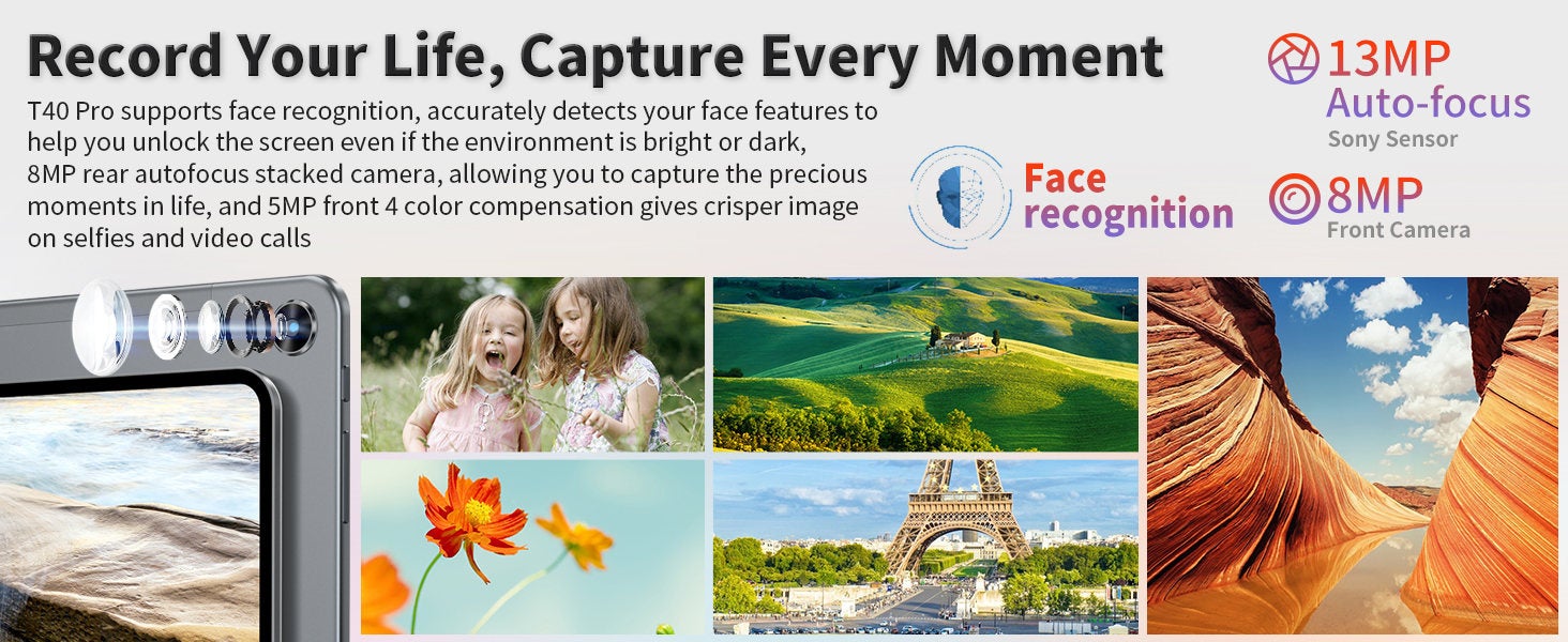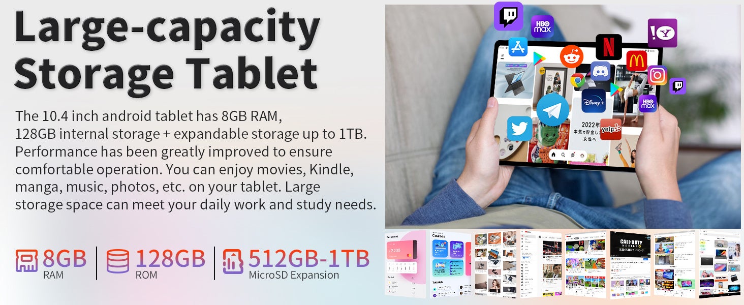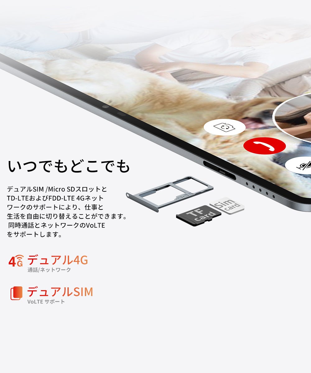 8GBの大容量LPDDR4メモリと128GBの高速ストレージを搭載し、豊富な動画、電子書籍などをダウンロードできます。さらに、お手持ちのMicroSD(TF)カードを挿入すれば最大512GB容量を拡張可能、容量不足の心配は不要です。容量を気にせずに写真やフャイルを保存でき、さまざまなコンテンツやエンターテイメントをお楽しみいただけます。