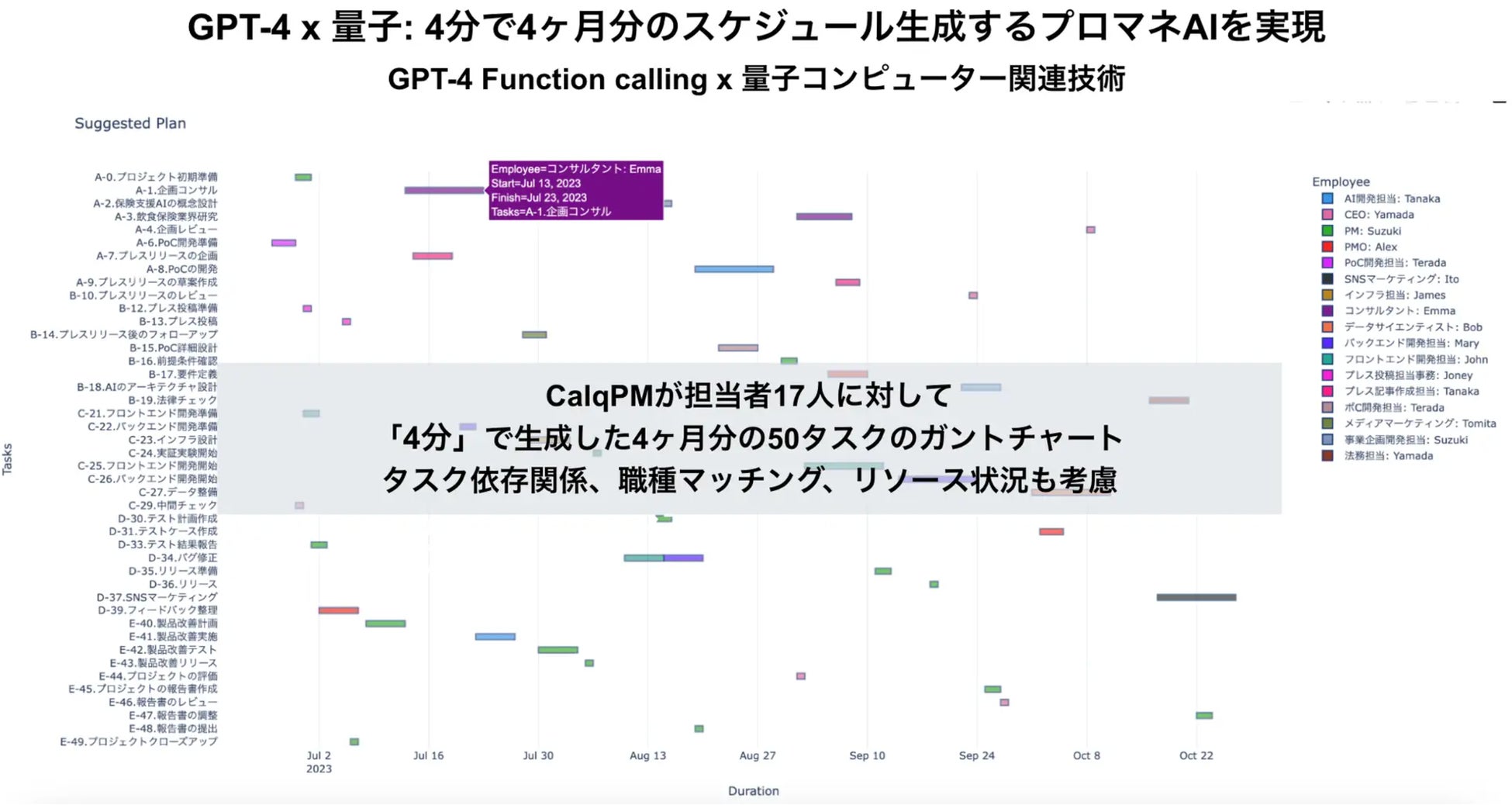 - 2023年06月25日:[GPT-4 × 量子: わずか4分で4ヶ月分のスケジュール生成するプロマネAIを実現](https://prtimes.jp/main/html/rd/p/000000118.000082094.html)