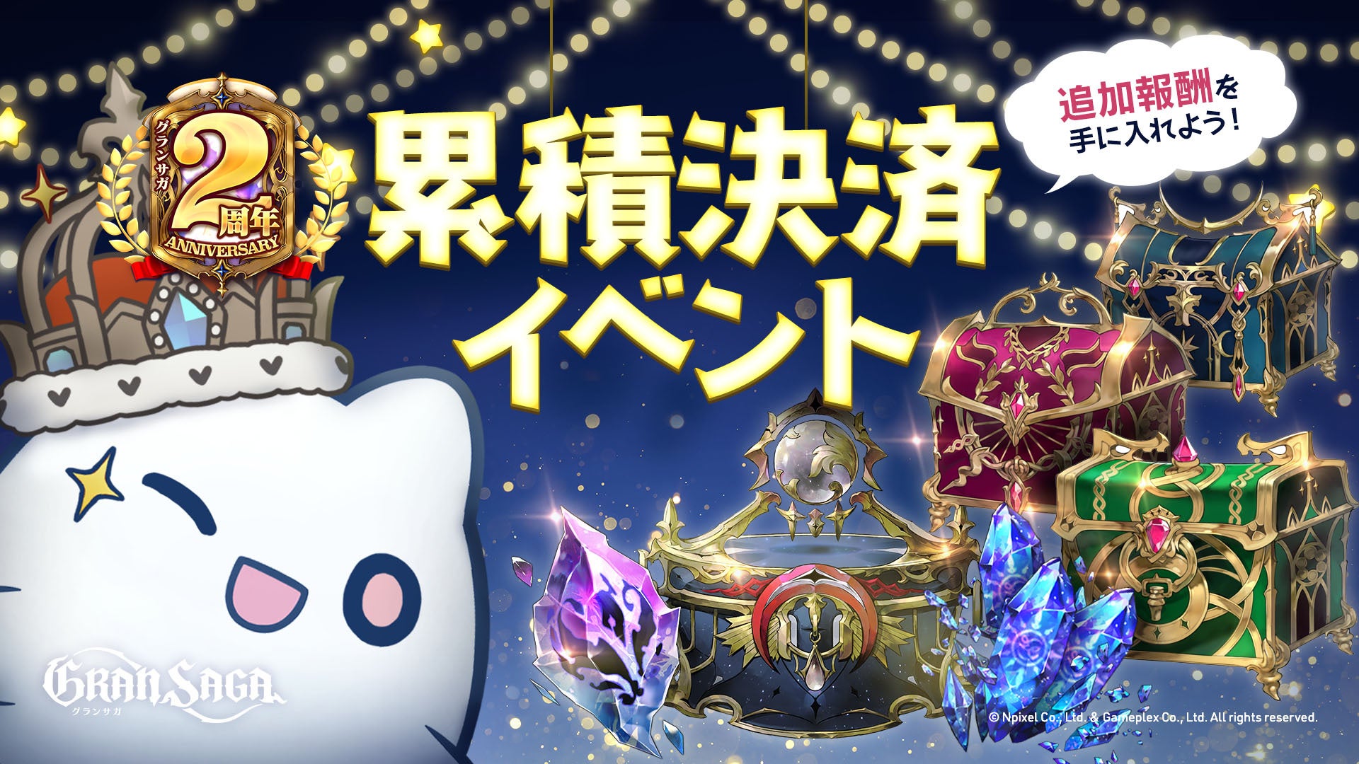 リリース2周年を記念し、ゲーム内での購入金額に応じて追加報酬を獲得できるイベントを開催します!