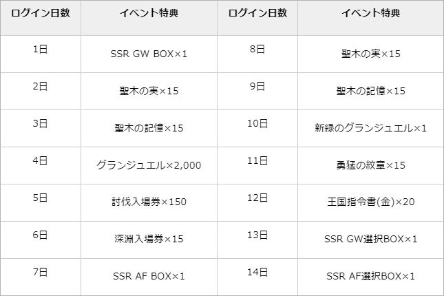 SSR GW 選択BOXをはじめ、豪華な報酬がラインナップされておりますので、欠かさずログインしましょう!