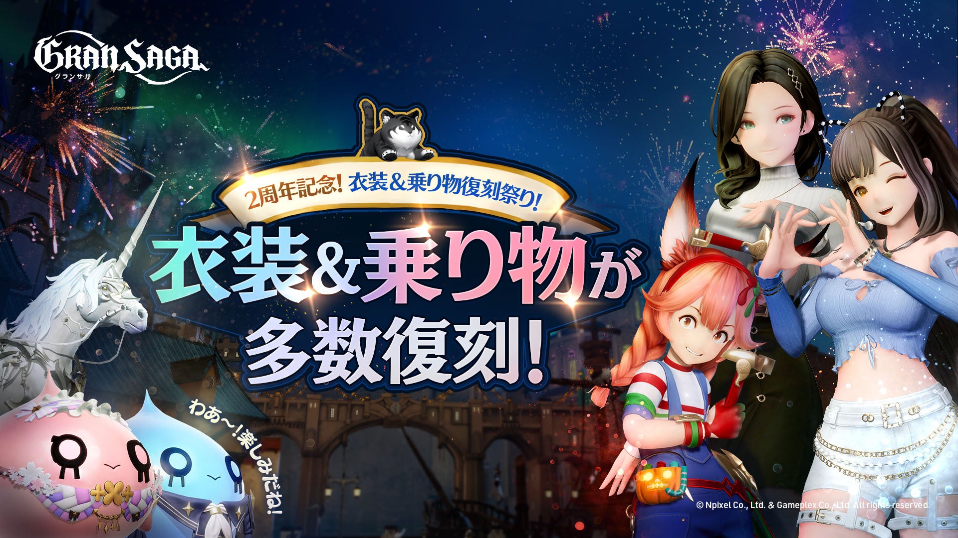 (1).「グランサガ」サービス開始2周年に先駆けて、過去に販売した衣装やシーズンパス限定衣装などを、復刻販売いたします。また、新規衣装や新規カラー衣装を追加および販売いたします。