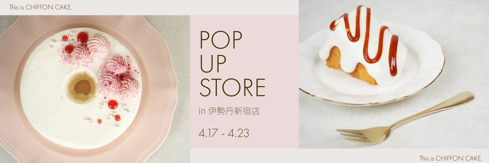 現在、姉妹ブランド手作りシフォンケーキ専門店・This is CHIFFON CAKE.が、伊勢丹新宿店にて4月23日までポップアップを開催中です。