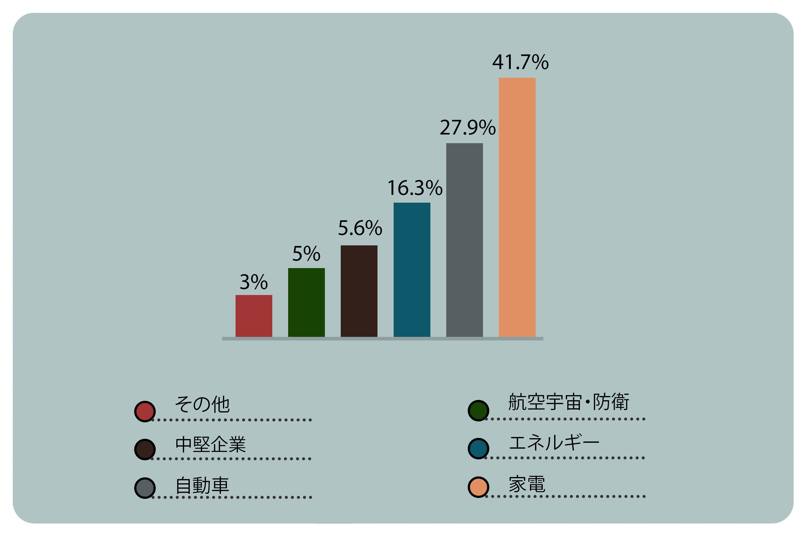 業界に基づいて、市場は自動車、エネルギー、家電、航空宇宙と防衛、ヘルスケアなどに分類されます。 家電セグメントは、2022 年に 41.7% のシェアで最高のセグメントシェアを保持しました。