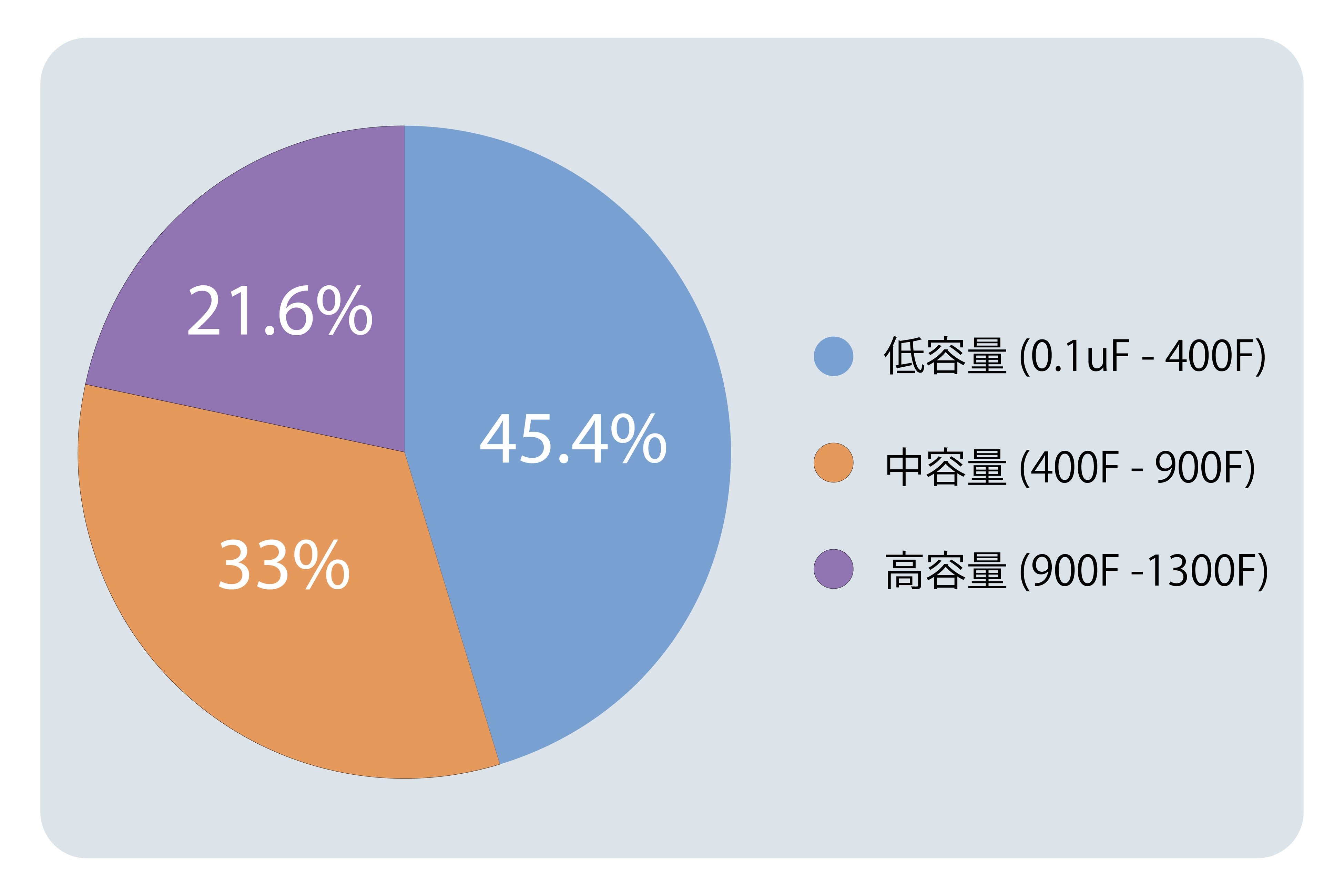 スーパーキャパシタの世界市場は、低容量、中容量、高容量に分類されます。低容量セグメントは、2022 年に 45.4% という最高のセグメントシェアを保持しました。これは、ESRが低く、高出力であることが特徴です。さらに、パルスの電源、アクセサリー電源、メイン電源、メモリバックアップ電源に使用されます。