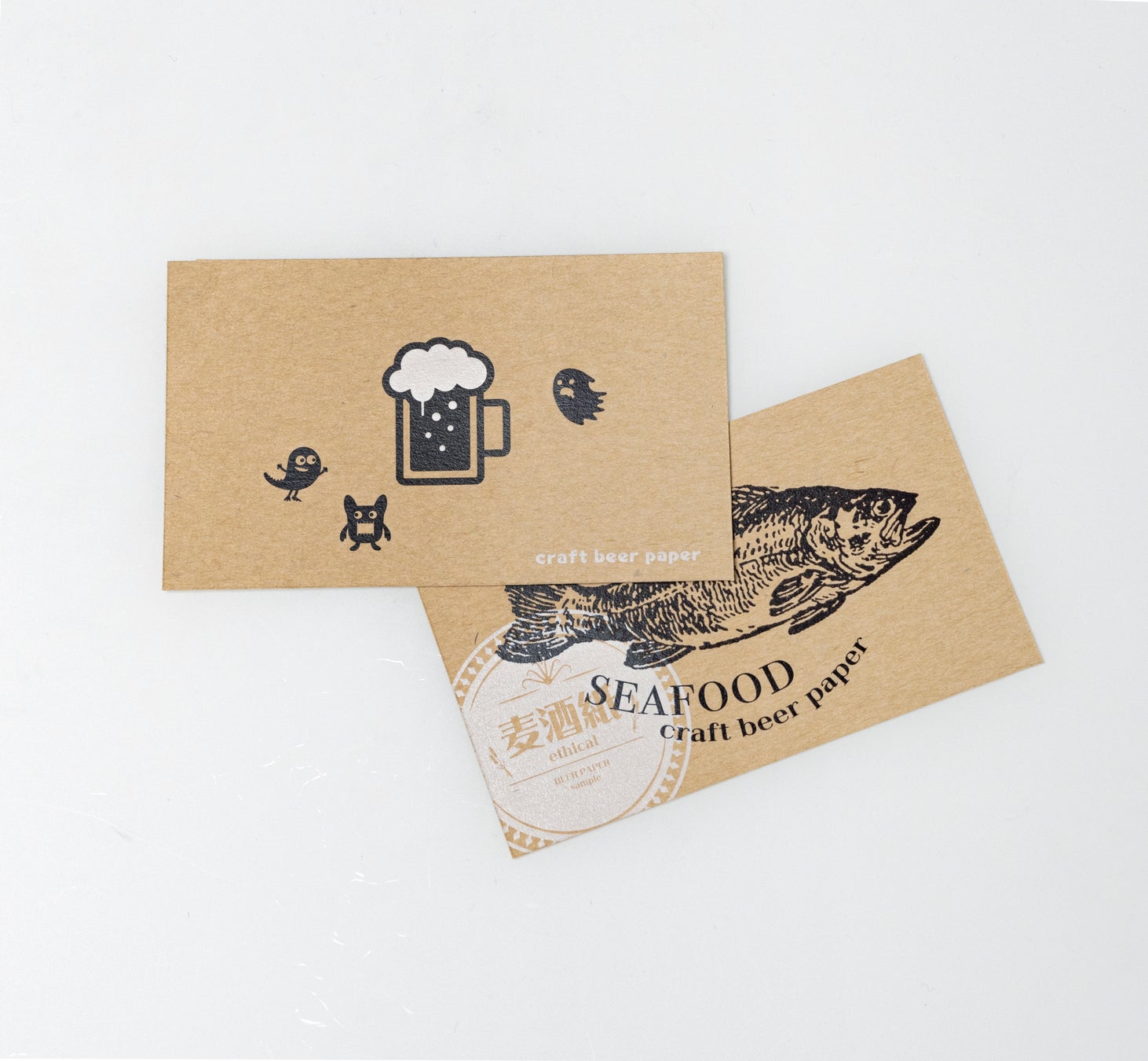 用紙にクラフト紙のような特徴的な色味が付いているので、カラー印刷だけでなく、白色1色や、黒色1色などのシンプルなデザインも映えます。用紙を見るだけで、クリエイティブが湧いてくるクリエイターも。