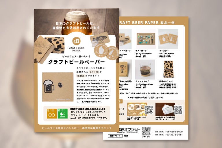 クラフトビールを作る際に廃棄される「モルト粕」を使用したサステナブルな用紙。ビールフェスでの活用を推進。