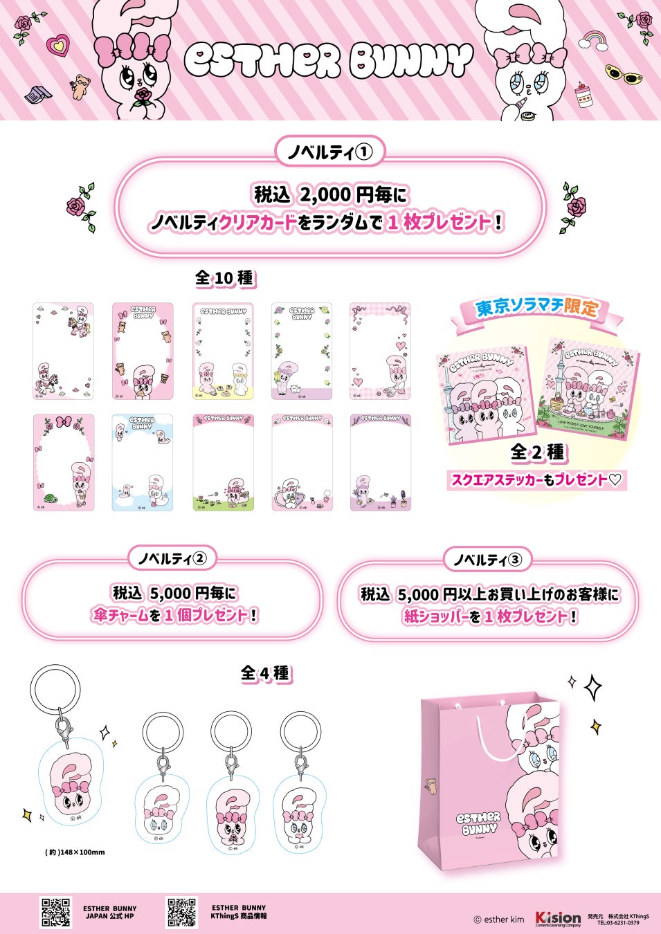 さまざまなキャラクターグッズを企画・販売している株式会社KThingS(東京都中央区)は、東京ソラマチ2Fにて『エスターバニーPOP UP STORE』を2025年3月26日(水)~2025年4月14日(月)の期間で開催いたします。