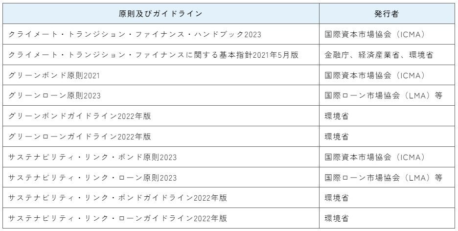 (註2) 本フレームワークは、資金調達に先立ち調達主体が定める方針のことを指し、調達資金の使途、プロジェク
