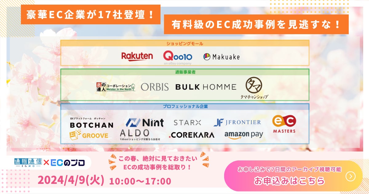 この春、絶対に見ておくべきECの成功事例や、ここでしか聞けないEC事情など、有料級の内容が満載ですので、ぜひお申し込みください。