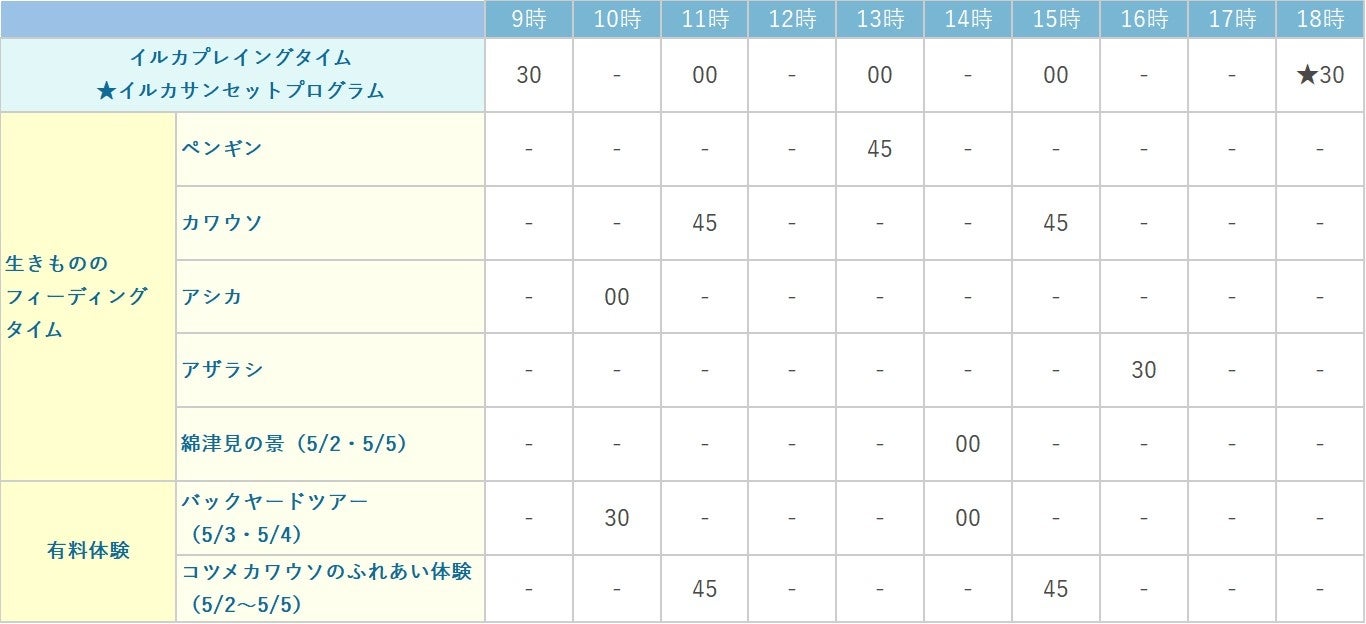 2026/5/2~5/5のプログラムスケジュール