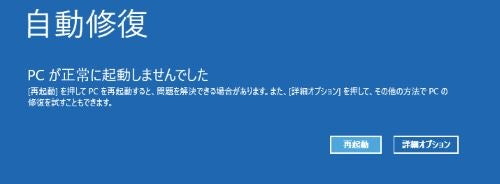 - パソコンが正常に起動しない場合はパソコンの強制終了と起動を2回繰り返します。パソコンを3回目に起動するとWindowsの回復環境が表示されます。