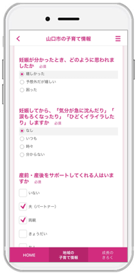 山口市は『母子モ』の追加機能である「質問票サービス」を伴走型支援事業に活用し、妊娠届出と妊娠届出アンケート、妊娠8カ月アンケートが、『母子モ』を通じてアプリから提出が可能となり時間や場所を問わず簡単に提出できるようになります。
