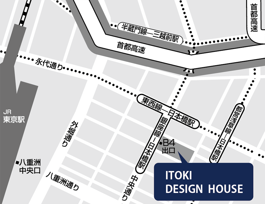 都営浅草線「日本橋」駅 直結 JR各線「東京」駅 徒歩5分