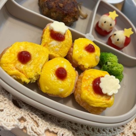 7.月齢に合わせて、お好みで少量ずつケチャップや好きな形に型どったプロセスチーズを飾って完成♪