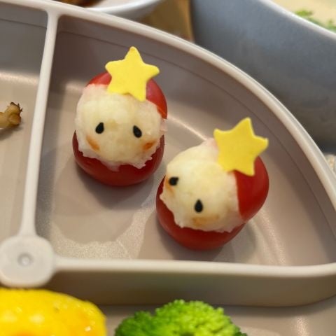そのままパクっと食べると、ミニトマトを丸呑みしてしまう可能性があり危険です。食べる際は必ず大人が見守り、帽子やポテト部分、体の部分と分けて食べるようにしてください。