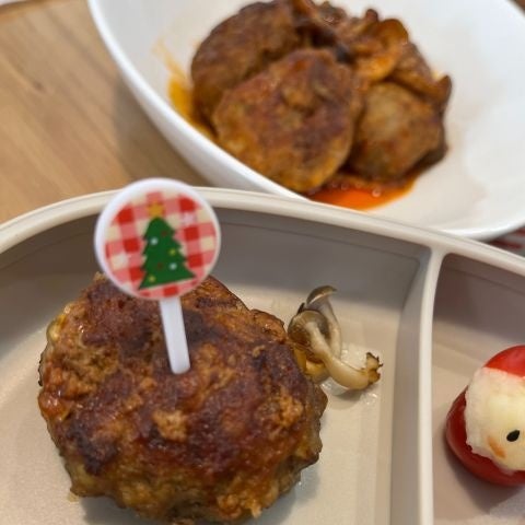 ミニトマトを使ったサンタ風のポテサラも、ぜひデコレーションを親子で楽しんでくださいね。