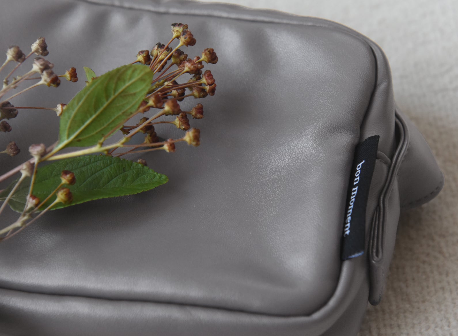 bon moment(ボンモマン) 洗えるフェイクレザー ハンドル付きポーチ